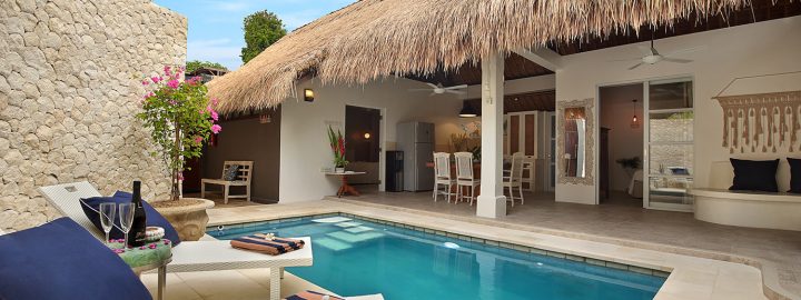 - Tropical Style Living Area with high bamboo ceilings and ceiling fans